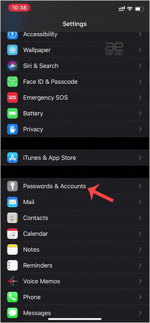 2. Scroll down and tap on Passwords & Accounts.