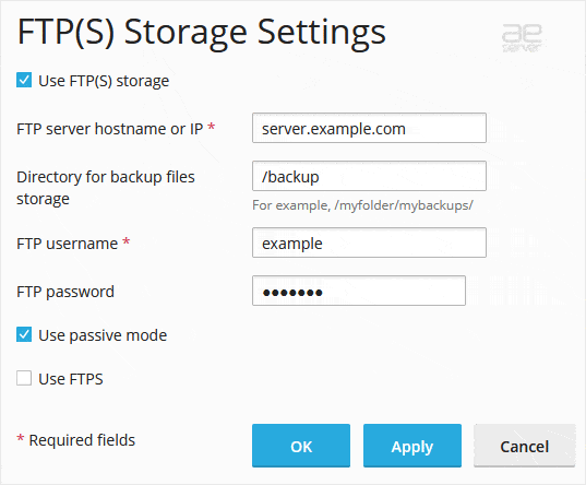 – Make sure that Use FTP(S) storage is marked as enabled.