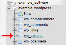 4. Select the appropriate table you want to edit. If you wish to change the blog name of WordPress, then select “wp-options”.
