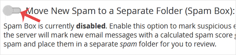 3. Toggle Process New Emails and Mark them as Spam to enable it. If the knob/toggle is greyed out, this indicates that Apache SpamAssassin is disabled.