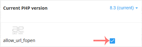 4. For enabling allow_url_fopen, checkmark it. For disabling it, uncheck it.