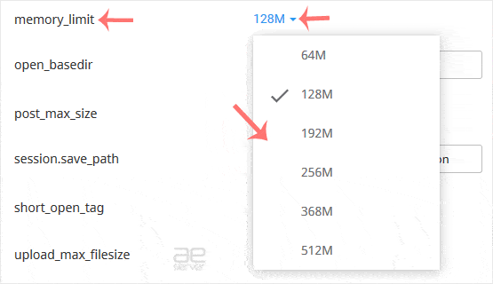 4. Look for memory_limit and click on the drop-down option displayed in front of it. Then choose the appropriate limit as per your requirements.