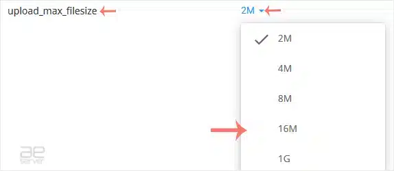 4. Look for upload_max_filesize and click on the drop-down option displayed in front of it. Then choose the appropriate limit as per your requirements.