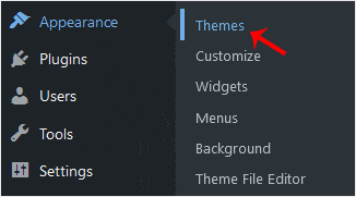 2. From the Dashboard menu, go to Appearance and click on Themes.