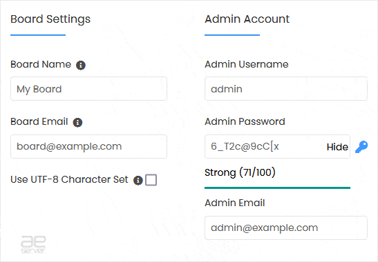 Note: Copy the admin username and password to Notepad. You will need those to access the admin area of your AEF forum later.