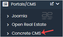 4. On the left side, locate the Portal/CMS category. Click on it and then on the Concrete CMS link that appears.