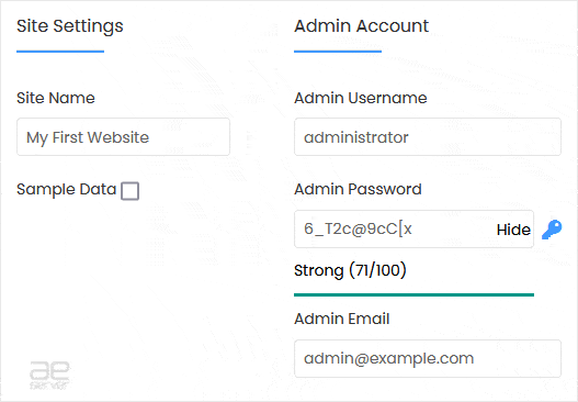 - Admin Email: Your e-mail address.