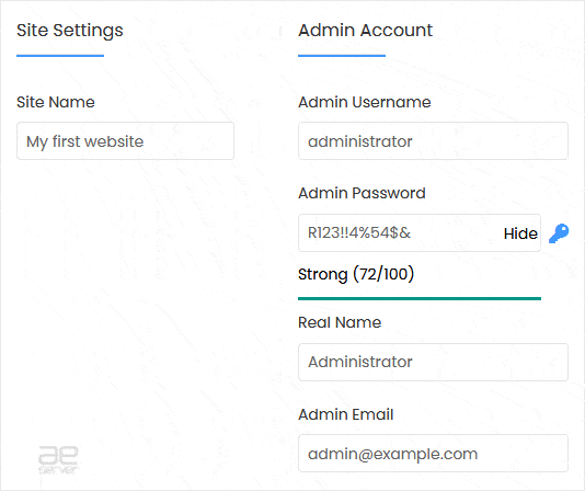 - Site Name: Enter the name of your website, such as e107.
