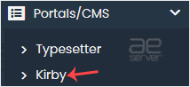 4. On the left side, locate the Portal/CMS category. Click on it and then on the Kirby link that appears.