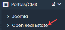 4. On the left side, locate the Portal/CMS category. Click on it and then on the Open Real Estate link that appears.