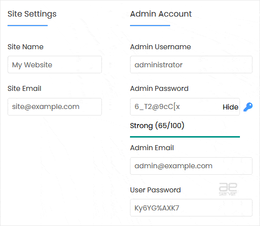 - Admin Email: Your e-mail address.