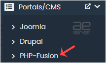 4. On the left side, locate the Portal/CMS category. Click on it and then on the PHP-Fusion link that appears.
