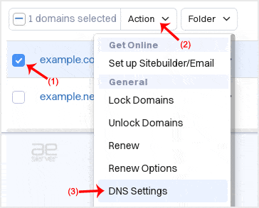 4. Check the box next to your domain name(s) and click on the DNS Settings from the Action menu.