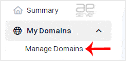 3. Click on My Domains from the left-side menu, then select Manage Domains in the drop-down.