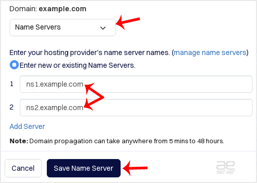 6. Enter your nameservers in the provided text boxes and click Save Name Server to save your changes.